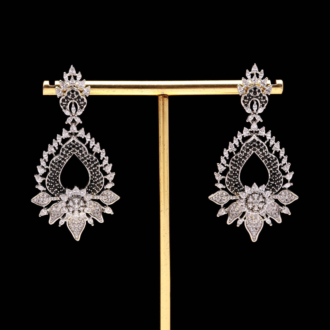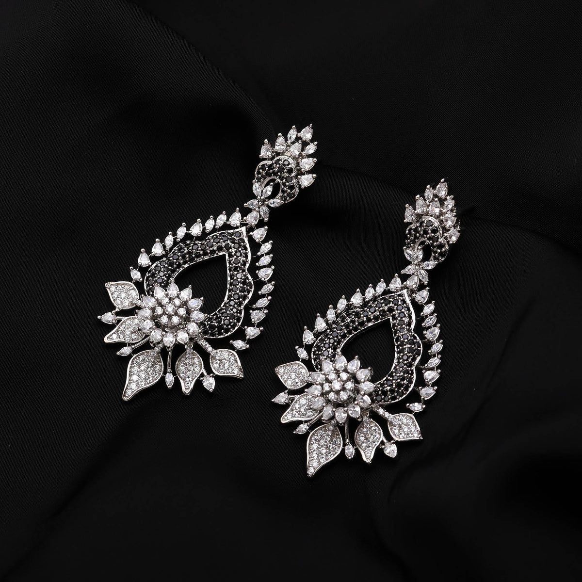 Magnificent Sapphire Blue and White American Diamond (AD) Heart-Shaped Dangler Earrings | Luxury Floral Statement - Blue