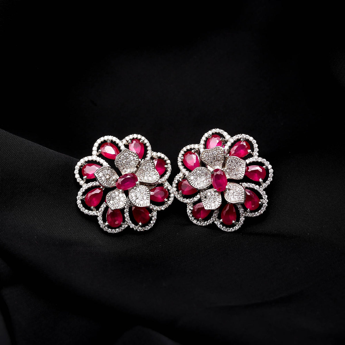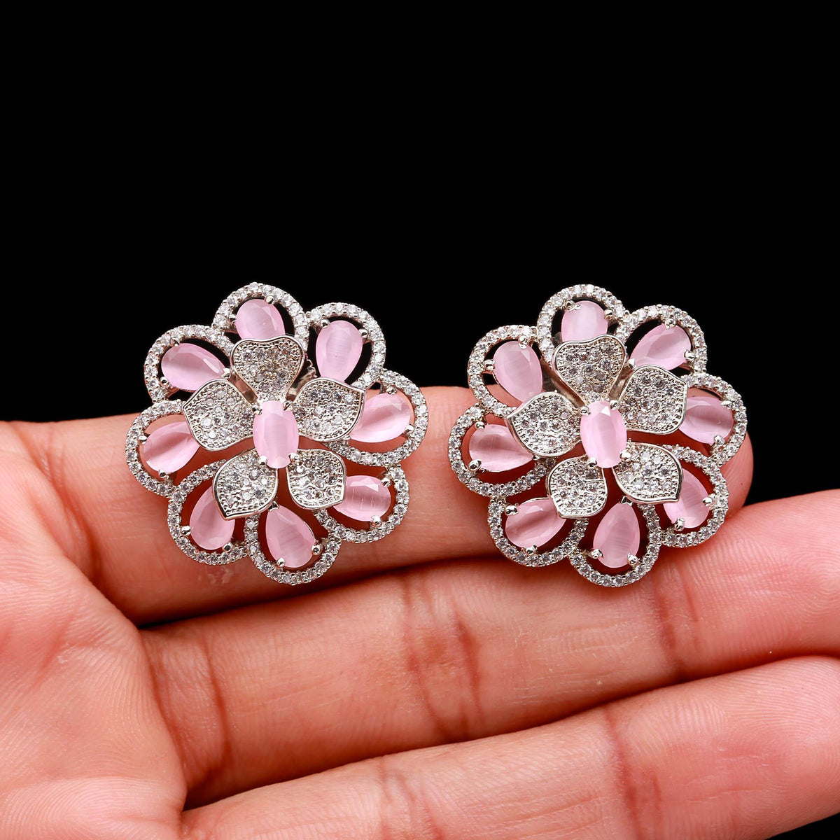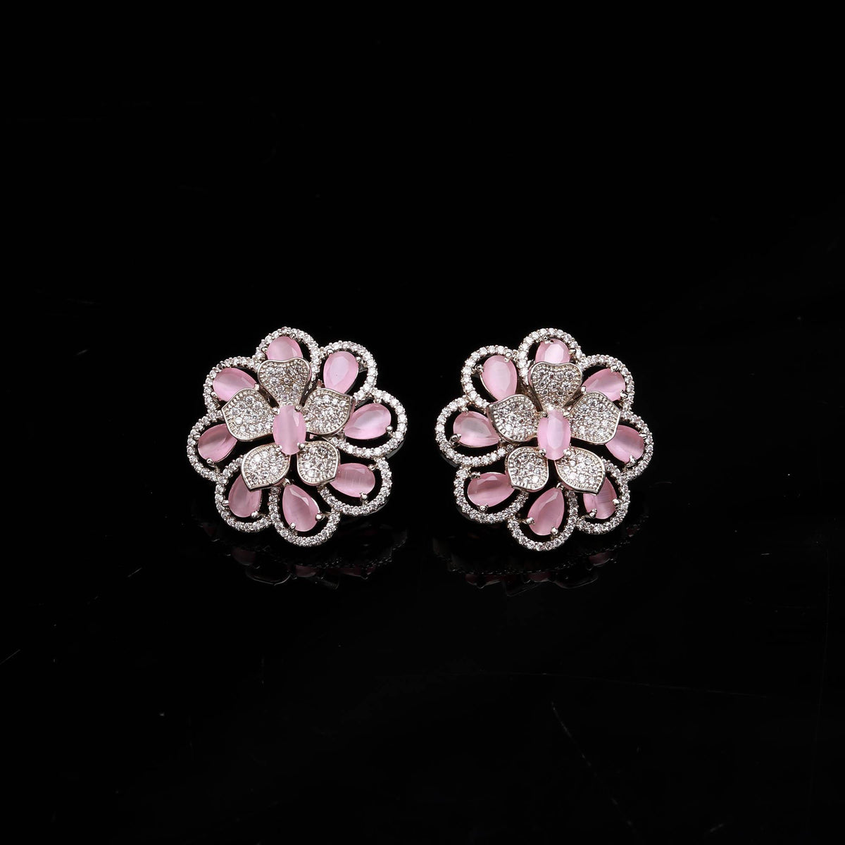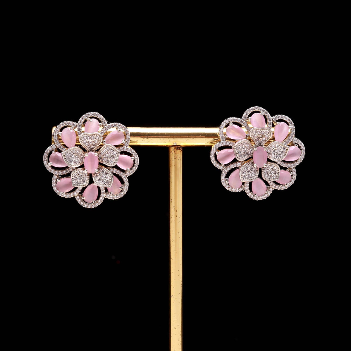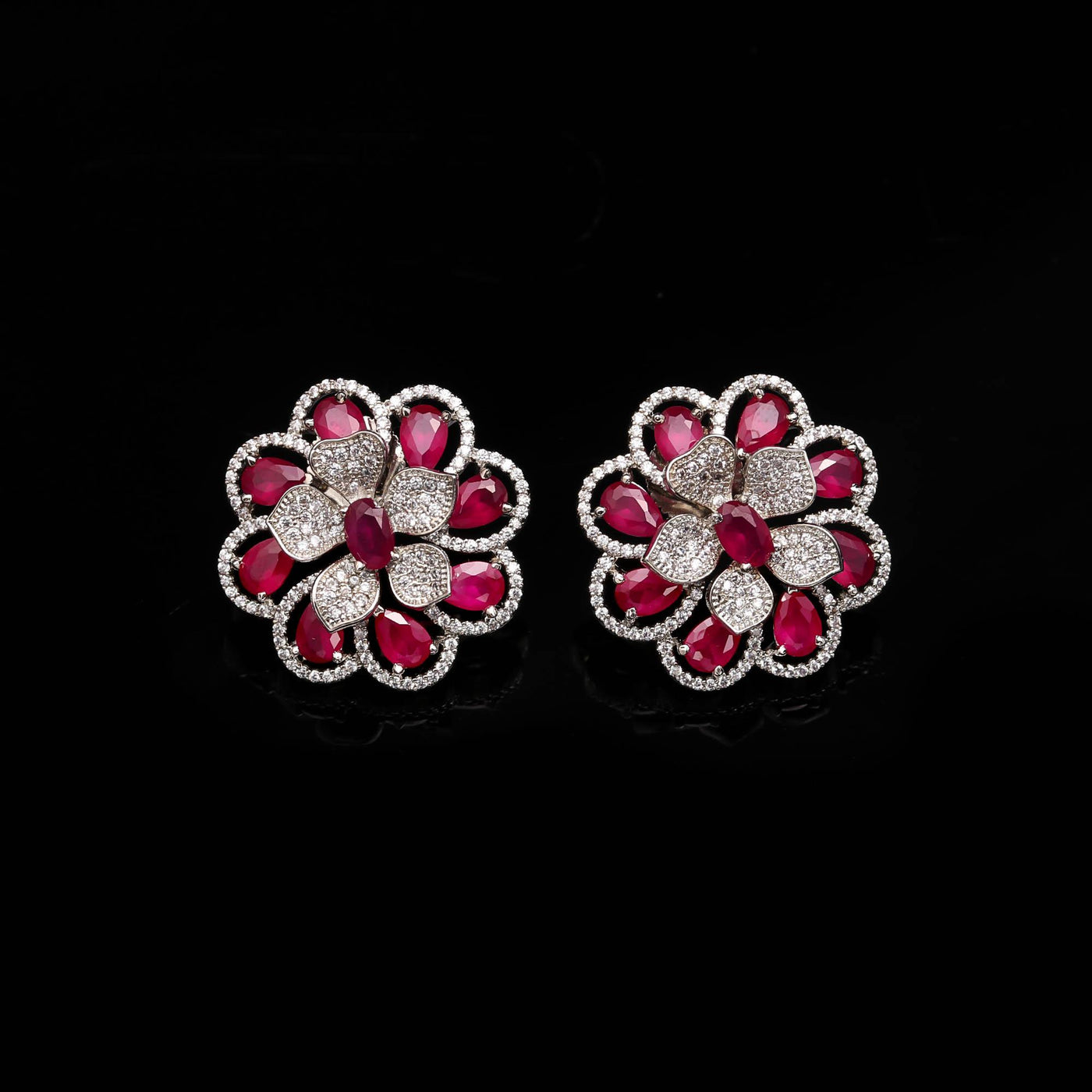 American Diamond (AD) Floral Stud Earrings | Multi-Color Options