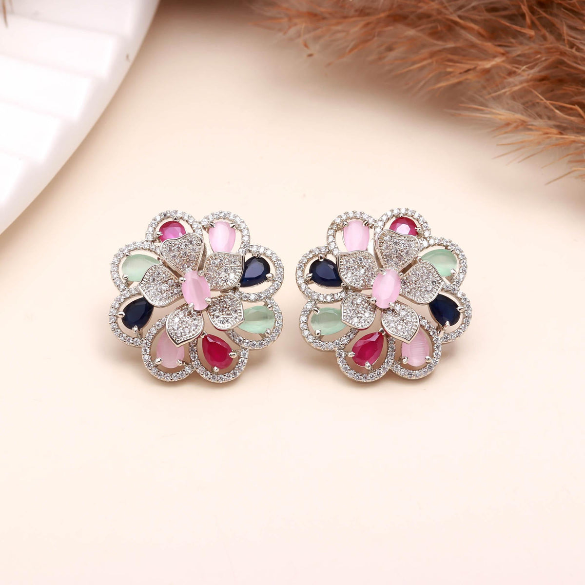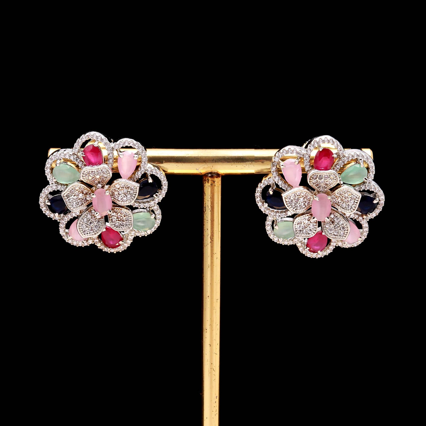 • Tags: Sapphire CZ Floral Studs, Premium AD Tops, Multi-Color Floral Earrings.